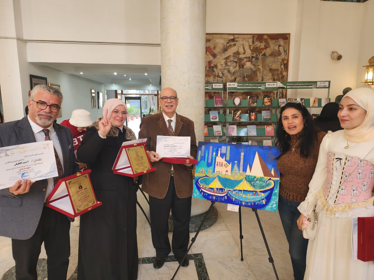 كما أُقيمت احتفالية كبرى جرى خلالها توزيع الإهداءات والشهادات التقديرية للمساهمين في إثراء الحركة الفنية، وذلك في إطار التبادل الثقافي العلمي الإبداعي، وما تشهده الحركة الفنية من حراك وتطورات باعتبارها نتاجًا لتفاعل المبدعين مع تطورات الحياة المعاصرة.