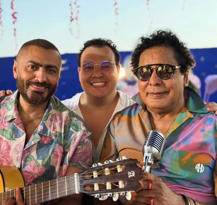 ومن جانبه، عبر الموزع أحمد طارق يحيى، عن سعادته البالغة بتلك الأغنية، حيث نشر عبر حسابه على “فيس بوك”، صورة مع محمد منير وتامر حسني من الكواليس، وعلق عليها بقوله: “شرف كبير أني أكون جزءاً من عمل هيفضل العمر كله… أول لقاء بين نجمين فرقوا معايا في شخصيتي وفي قرارات كتير، وكانوا دايماً داعمين ليا من أول يوم. أصدقاء وفنانين تاريخهم يشرف أي حد.. أنا وسط محمد منير وتامر حسني”.
