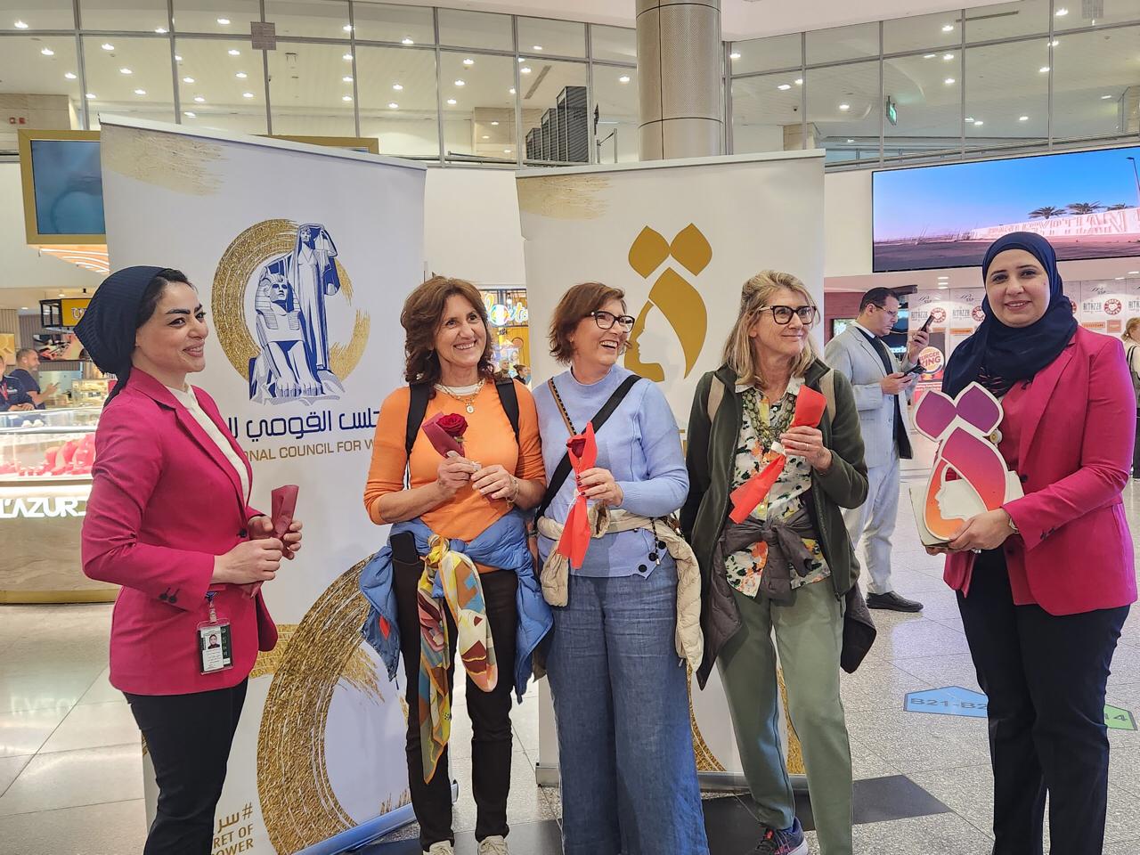المجلس القومى للمرأة يستقبل سيدات العالم بمطار القاهرة فى يومهن العالمى ٨ مارس