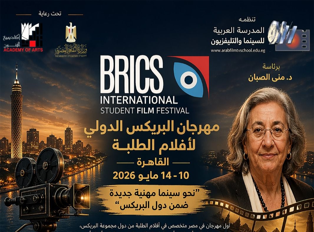 تستعد القاهرة لإطلاق فعاليات الدورة الأولى من مهرجان “البريكس السينمائي الدولي لأفلام الطلبة”، حيث يُعقد مؤتمر صحفي في تمام الساعة الحادية عشرة من صباح يوم الثلاثاء 5 مايو 2026، بقاعة ثروت عكاشة في أكاديمية الفنون، بحضور نخبة من صناع السينما والإعلاميين والمهتمين بالحراك السينمائي الشبابي.