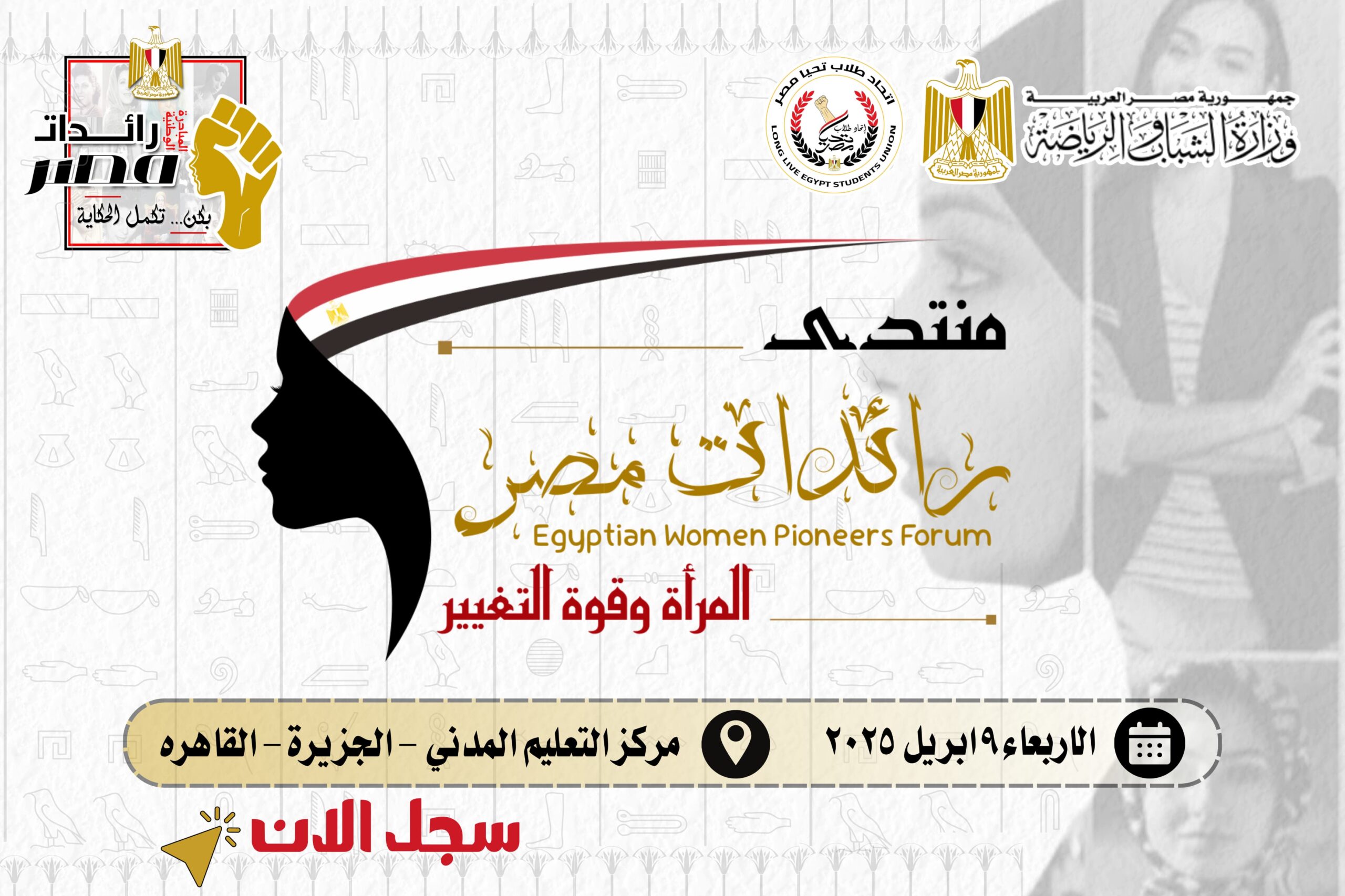 في إطار الاهتمام المتنامي بدعم وتمكين المرأة المصرية، وتحت رعاية الأستاذ الدكتور أشرف صبحي، وزير الشباب والرياضة، من خلال الإدارة المركزية للتعليم المدني، وبالتعاون مع اتحاد طلاب تحيا مصر، تنطلق فعاليات منتدى “رائدات مصر” في اطار المبادره الوطنية ( رائدات مصر ) ، والمقرر عقده يوم الأربعاء الموافق ٩ أبريل ٢٠٢٥، في قاعة مؤتمرات مركز التعليم المدني بالجزيرة، في تمام الساعة ٣ عصرًا.
