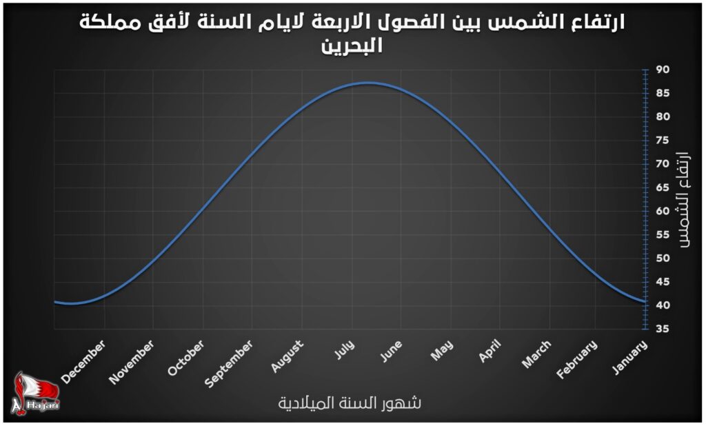 وبين الحجري أن أهم ما يلاحظ في المرحلة الانتقالية بين فصلي الخريف والشتاء انخفاضاً ملحوظاً في زاوية ارتفاع الشمس، حيث تصل في الخليج إلى أدنى مستوى لها عند 40° و24′ في الساعة (11:36) ظهرا في يوم الانقلاب الشتوي، وبتالي يكون طول ظلال الأجسام أطول ما يمكن ومتجه إلى الشمال ليصل طول ظل شاخص لمتر واحد إلى (1.542 متر) أي بنسبة (154.2%) من طول الأجسام، وبتالي يقلل من شدة الإشعاع الشمسي على سطح الأرض، هذا الانخفاض يؤدي إلى ضعف قدرة الأشعة على اختراق الغلاف الجوي على حسب الموقع من خطوط العرض للكرة الأرضية البعيدة عن خط الاستواء الأرضي، فتتراجع درجات الحرارة بشكل واضح حتى نهاية فبراير للخليج ويختلف من منطقة إلى أخرى، كما يزداد طول الليل ليصل إلى نحو 13.5 ساعة مقابل نهار لا يتجاوز 10.5 ساعة بين 18 و26 ديسمبر للخليج مما يقلل من فترة التسخين اليومي من أشعة الشمس للمسطحات الأرضية والبحرية.