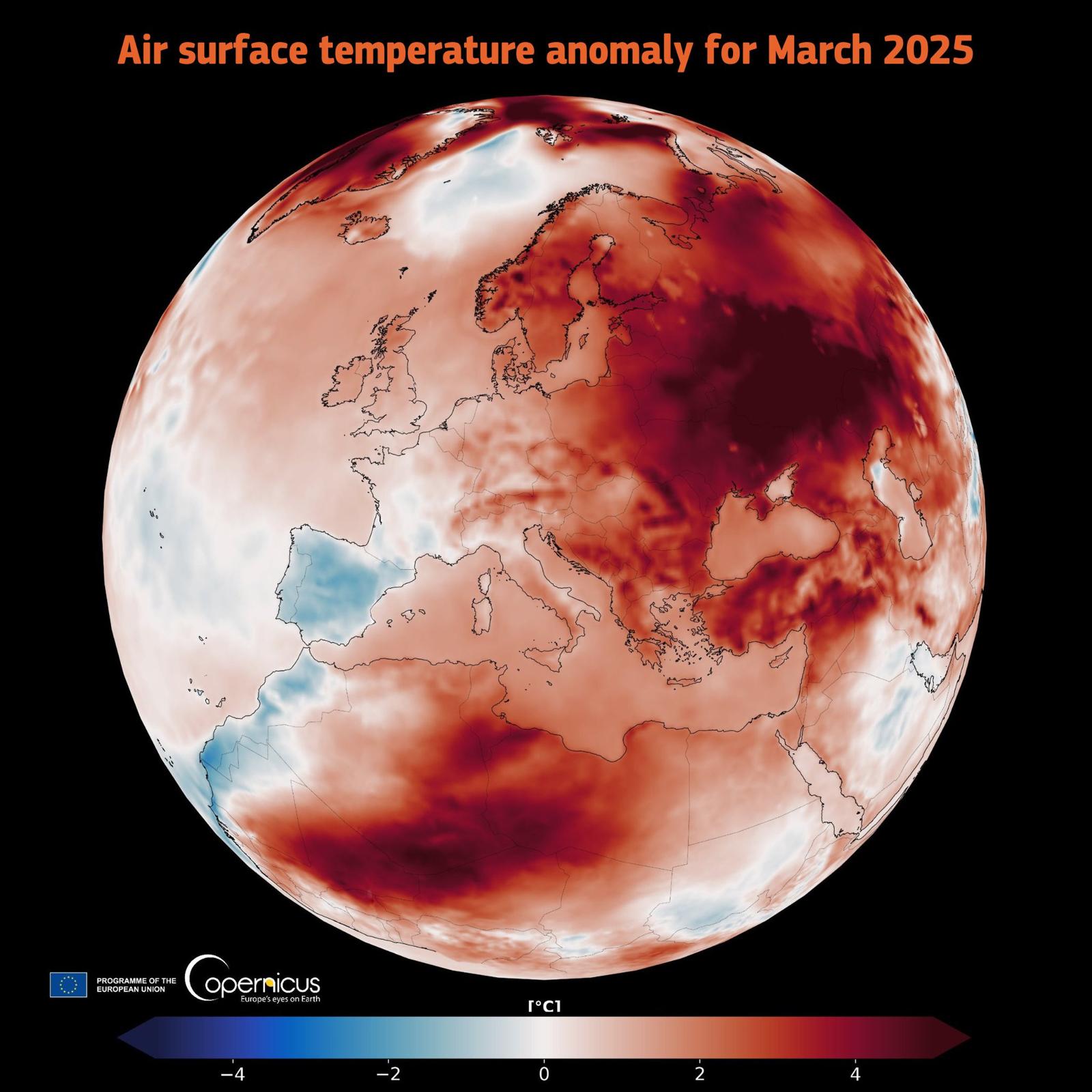 ‏شهر مارس 2025 سجل كـ ثاني أكثر شهر مارس دفئًا في التاريخ منذ الثورة الصناعية !