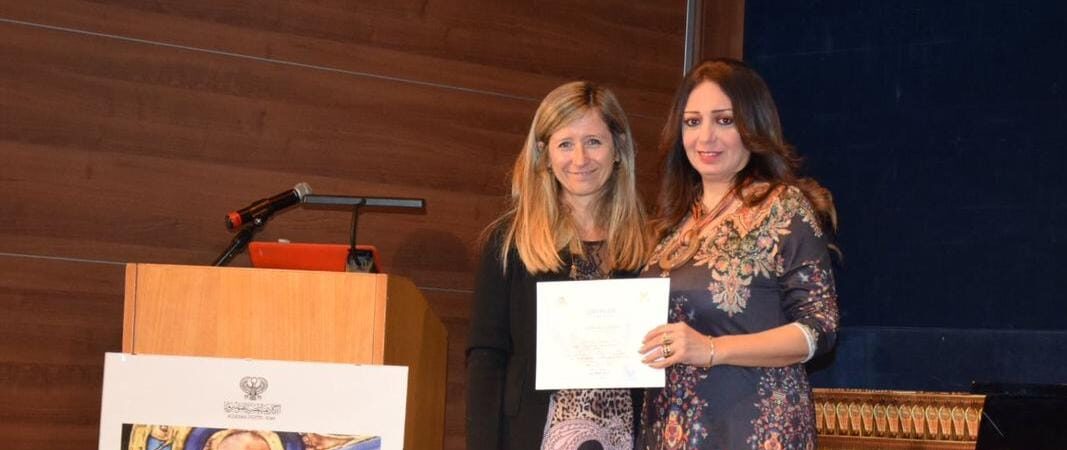 رانيا يحيى تكرم عالمة الاثار الايطالية كاروزى بالاكاديمية المصرية بروما وممثلة وزارة الثقافة الايطالية داخل الاكاديمية المصرية بروما
